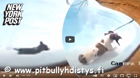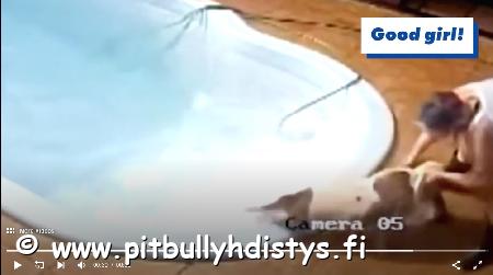 Athena-niminen 5-vuotias pitbulli pelasti koiranpennun hukkumiselta Brasiliassa, Jardinopoliksessa. Katso dramaattiset videot linkeistä.