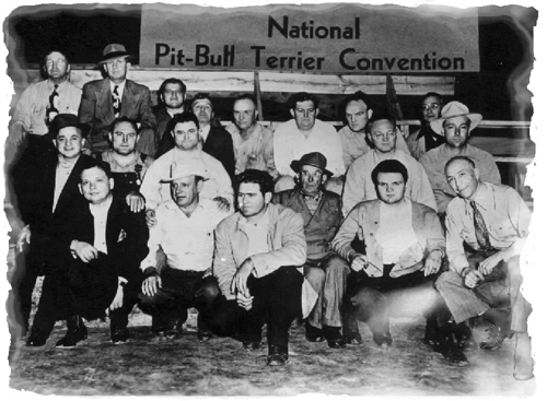 Ryhmä herrasmiehiä kokoontuneena National Pit Bull Terrier tapahtumaan, 1900-luvun puoliväli